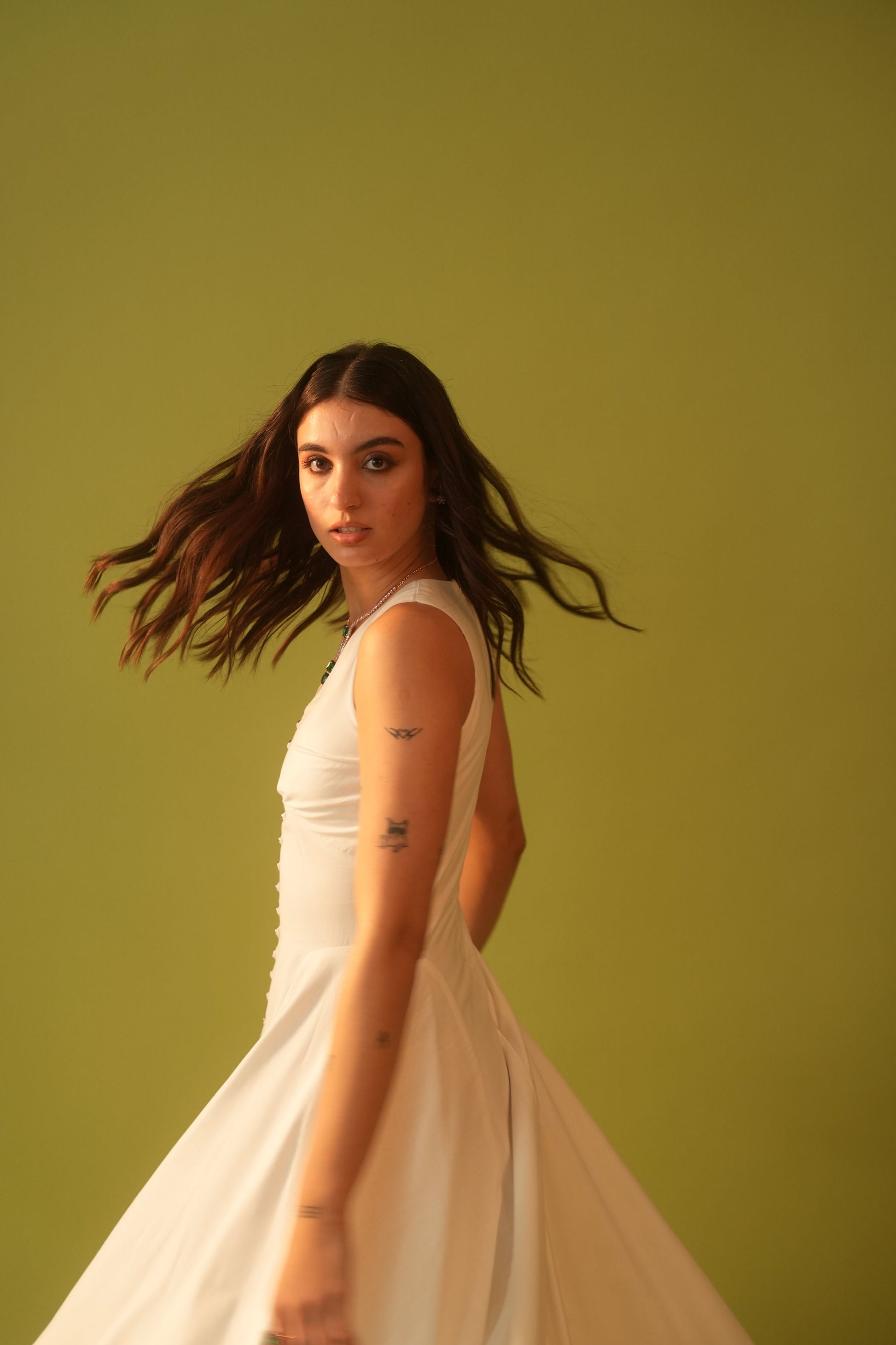 Moon A-Line Fitted Dress With Zipper At Back